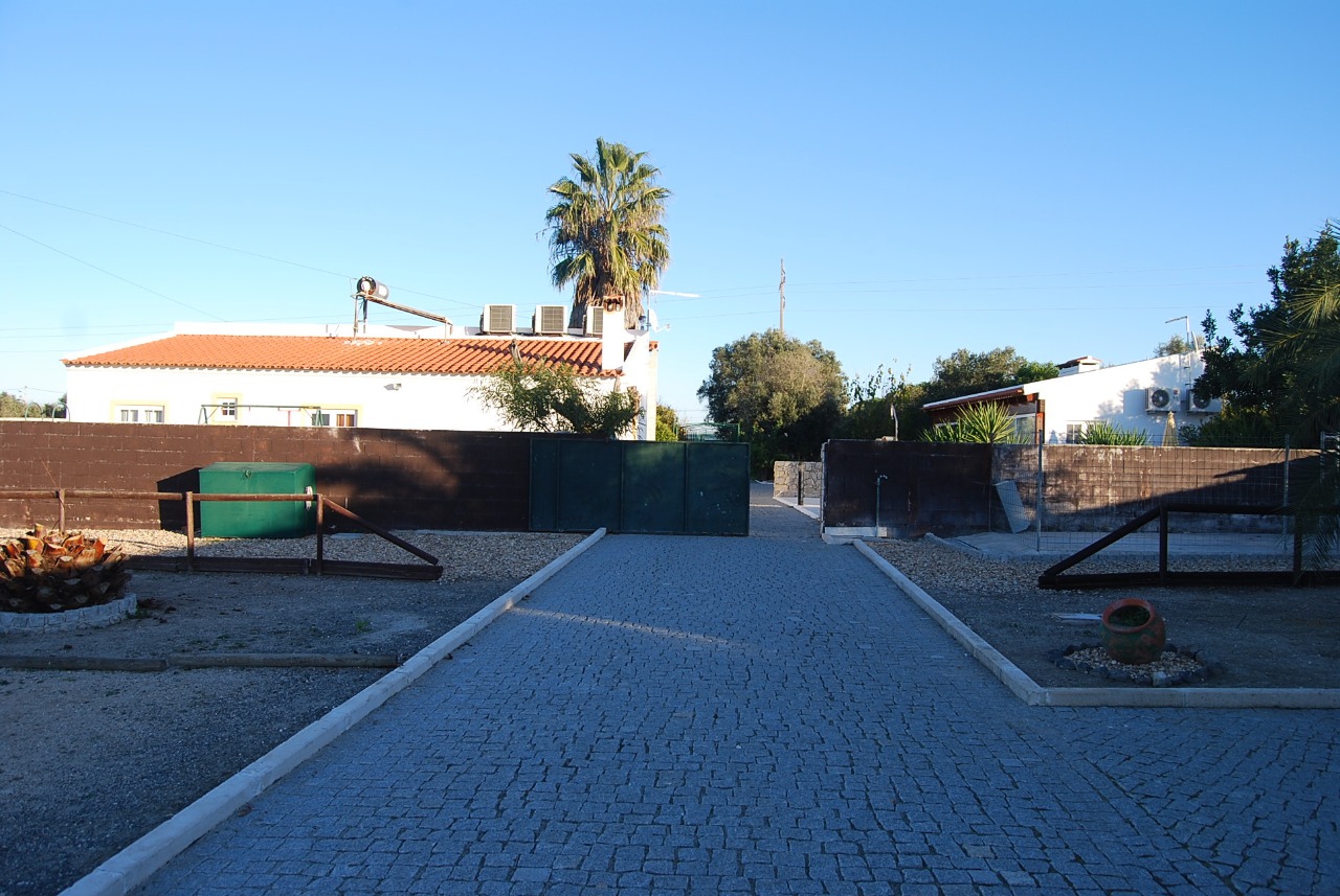 os muros da quinta são revestidos a pedra e o portão é automático.